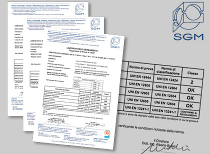 I cancelli a due ante battenti sono testati e certificati fino ad una larghezza max di 8 mt in classe 2; per il modello scorrevole, invece, per una larghezza max di 12 mt in classe3.