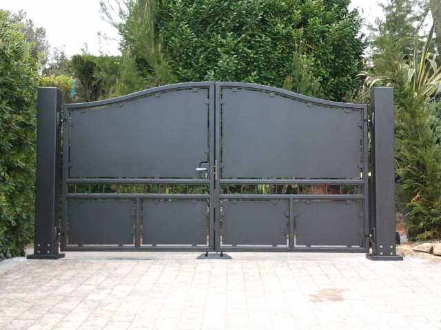 La nostra serie comprende varie tipologie di cancelli lineari, ad arco, e su richiesta sia battente ad una o due ante sia scorrevole. La serie si completa con la linea delle recinzioni e ringhiere per balcone lineari, ad arco o inclinate, tutte in armonia con lo stesso stile dei cancelli, con profili dello stesso disegno ma di dimensione ridotta. La seconda tipologia di cancelli e recinzioni da noi prodotti viene realizzata con profili squadrati, partendo da materiale estruso pieno, utilizzando elementi ornamentali e realizzazioni in alluminio battuto, il tutto unito e bloccato con ribattini in alluminio che riprendono lo stile della vecchia tradizione artigiana. Oltre ai modelli standard, si possono realizzare lavorazioni e disegni particolari su lamiere, in base alle richieste del cliente.